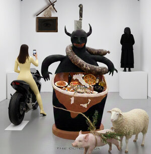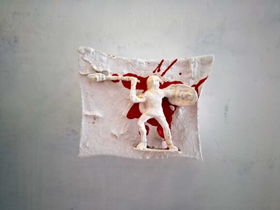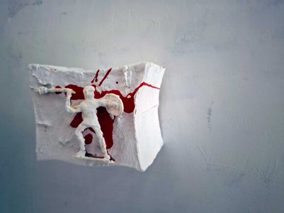 3. Nell'immagine (con l'aggiunta dei disegni a carboncino sul muro) si sviluppa un altro concetto che concretizza la famosa battuta: